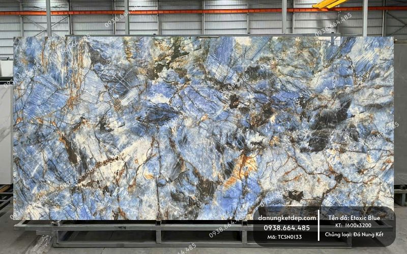 Đá nung kết Etoxic Blue là mẫu đá nung kết( hay Sintered Stone) là một loại vật liệu tổng hợp được tạo ra từ các khoáng chất tự nhiên như đất sét, cát thạch anh, bột đá và các oxit tự nhiên. Quy trình sản xuất sử dụng công nghệ tiên tiến, nung các thành phần này ở nhiệt độ cực cao, thường từ 1.200 đến 1.400 độ C, trong môi trường áp suất lớn. Quá trình này làm các khoáng chất kết dính với nhau, tạo nên một tấm đá đồng nhất với độ cứng cao, khả năng chống chịu vượt trội và tính thẩm mỹ tinh tế.